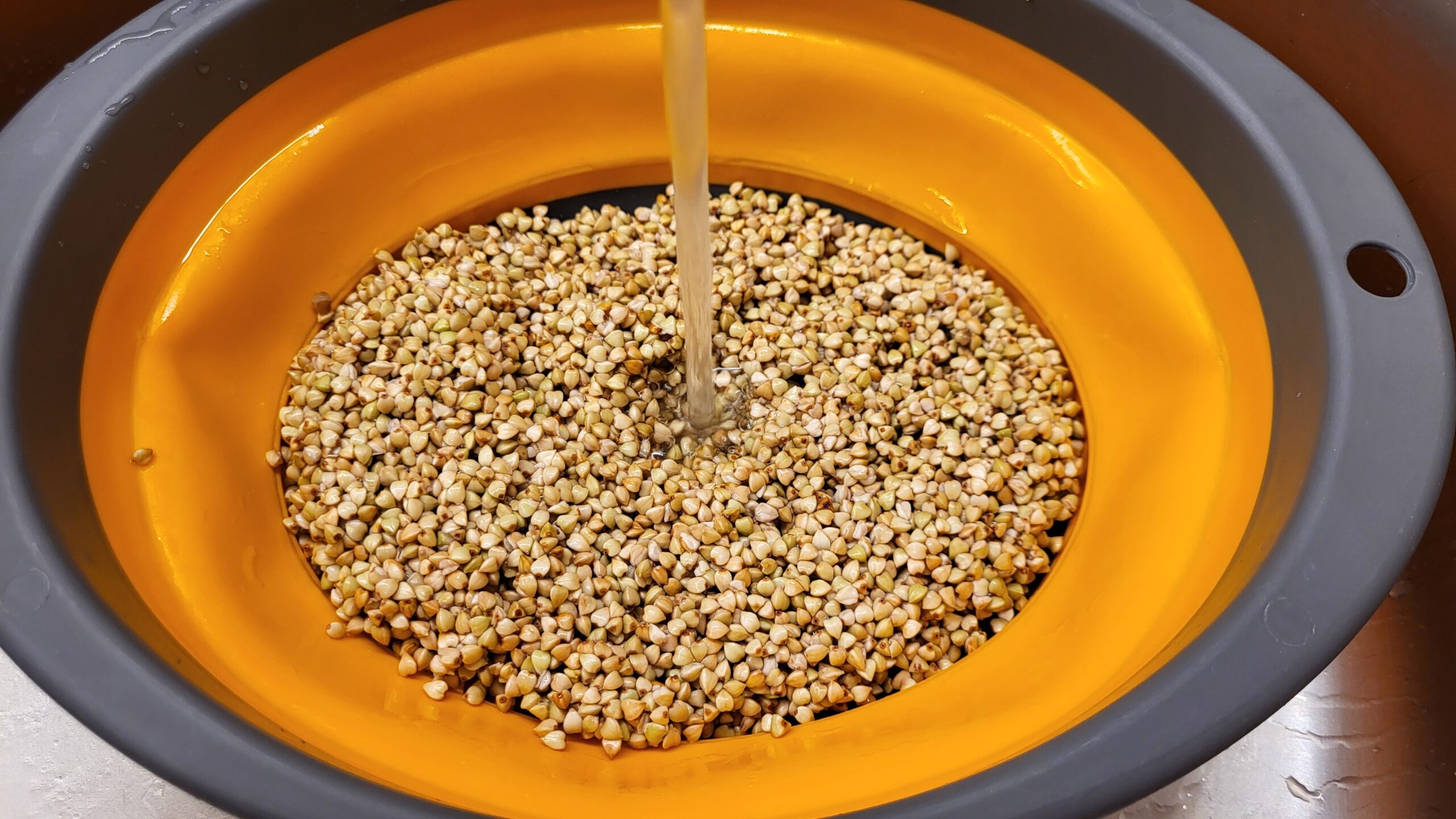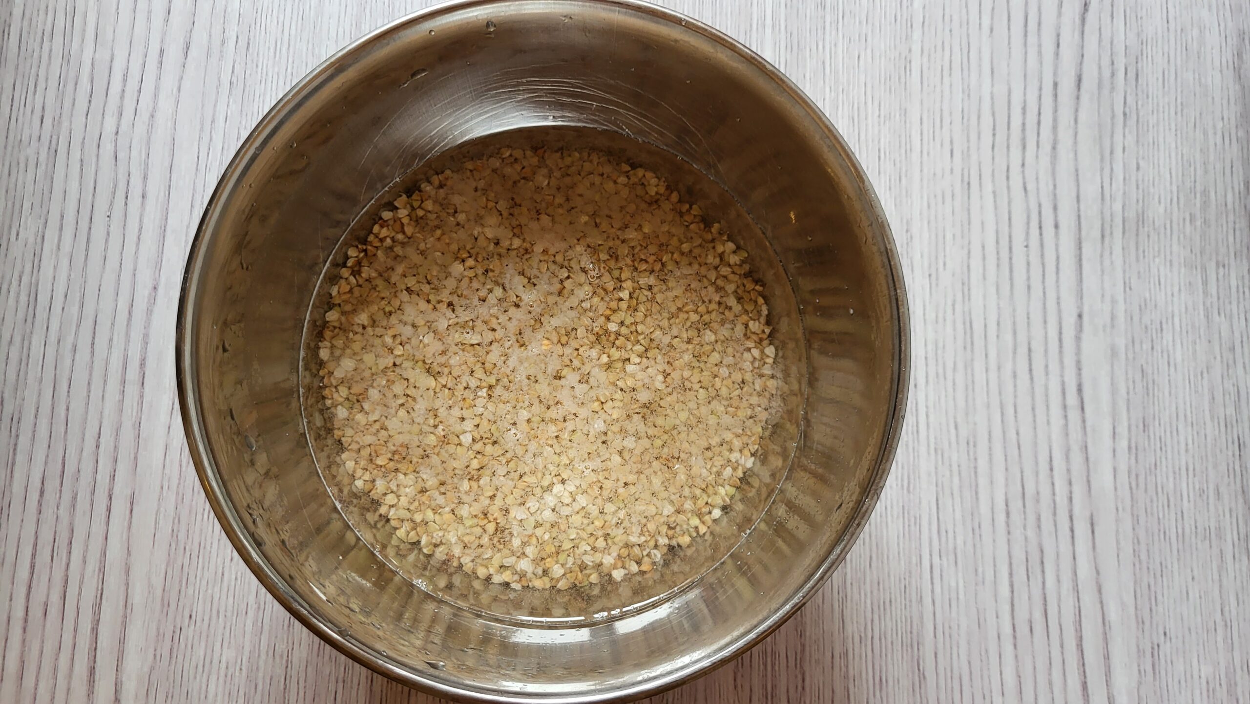 Heljdu dobro isprati i naliti vodom da ogrezne. Ostaviti preko noći ili minimum 8 sati na sobnoj temperaturi.
