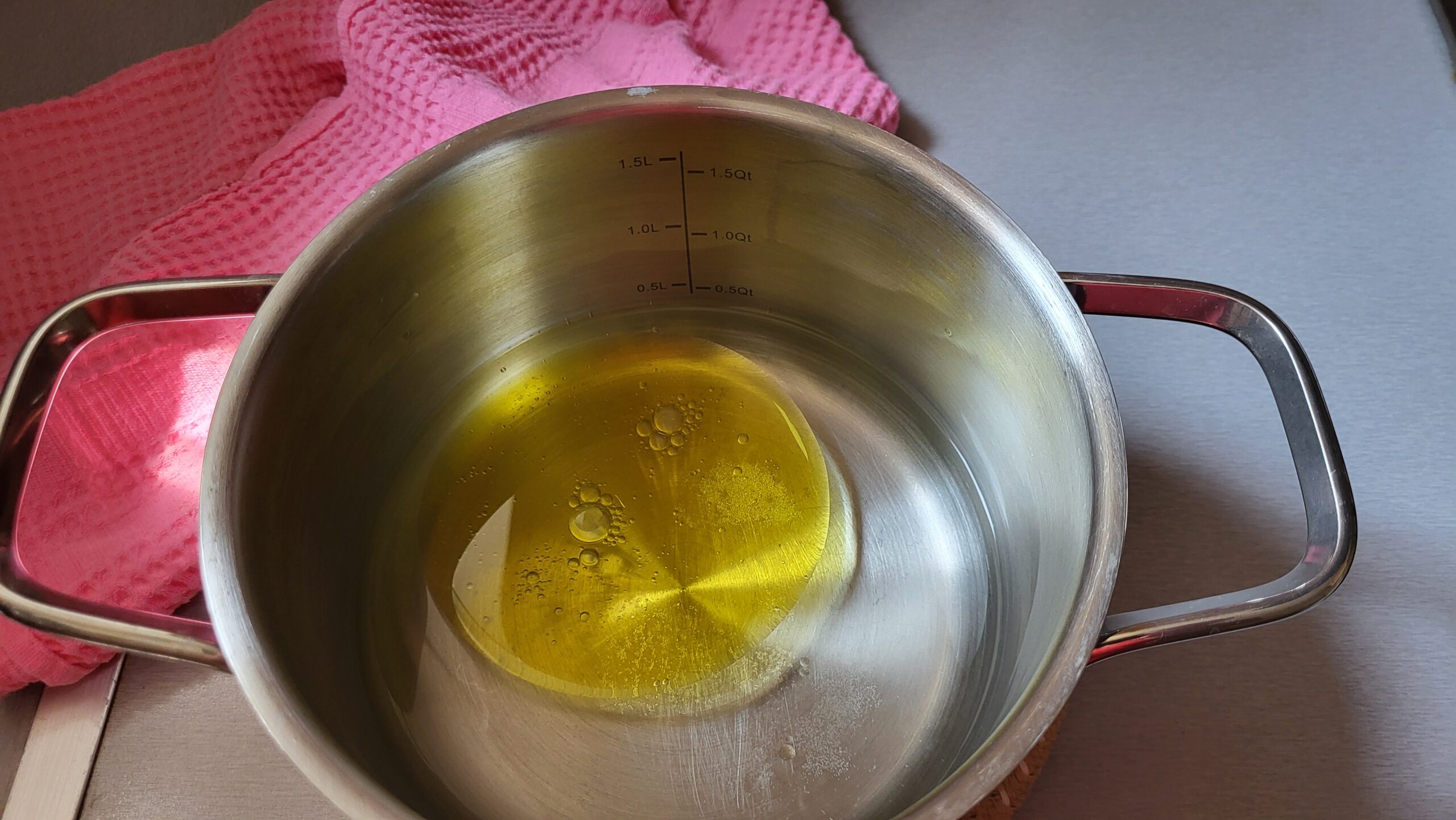 U manjoj šerpici sipajte 300 ml vode, dodajte prstohvat soli i 3 kašike maslinovog ulja.