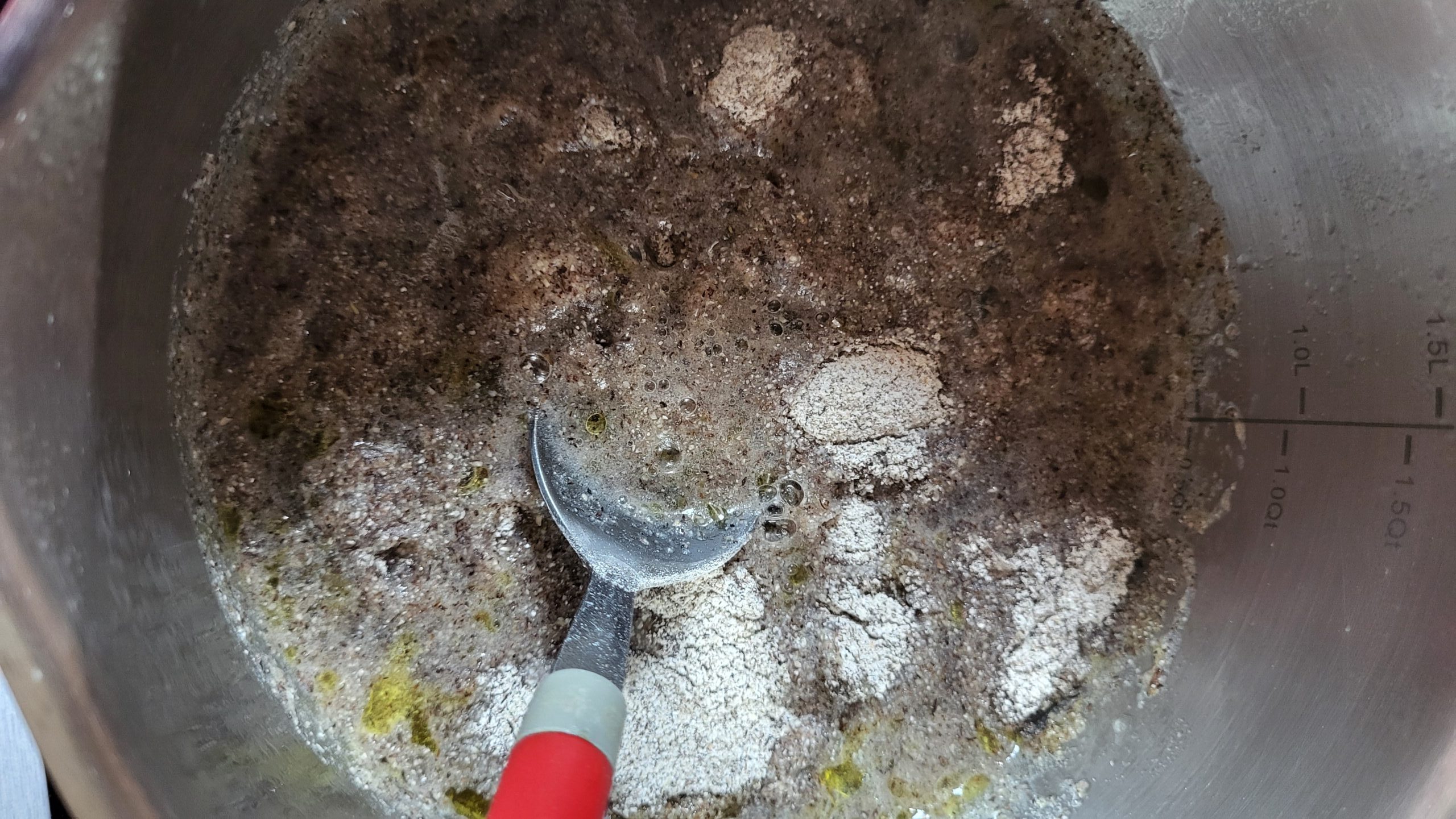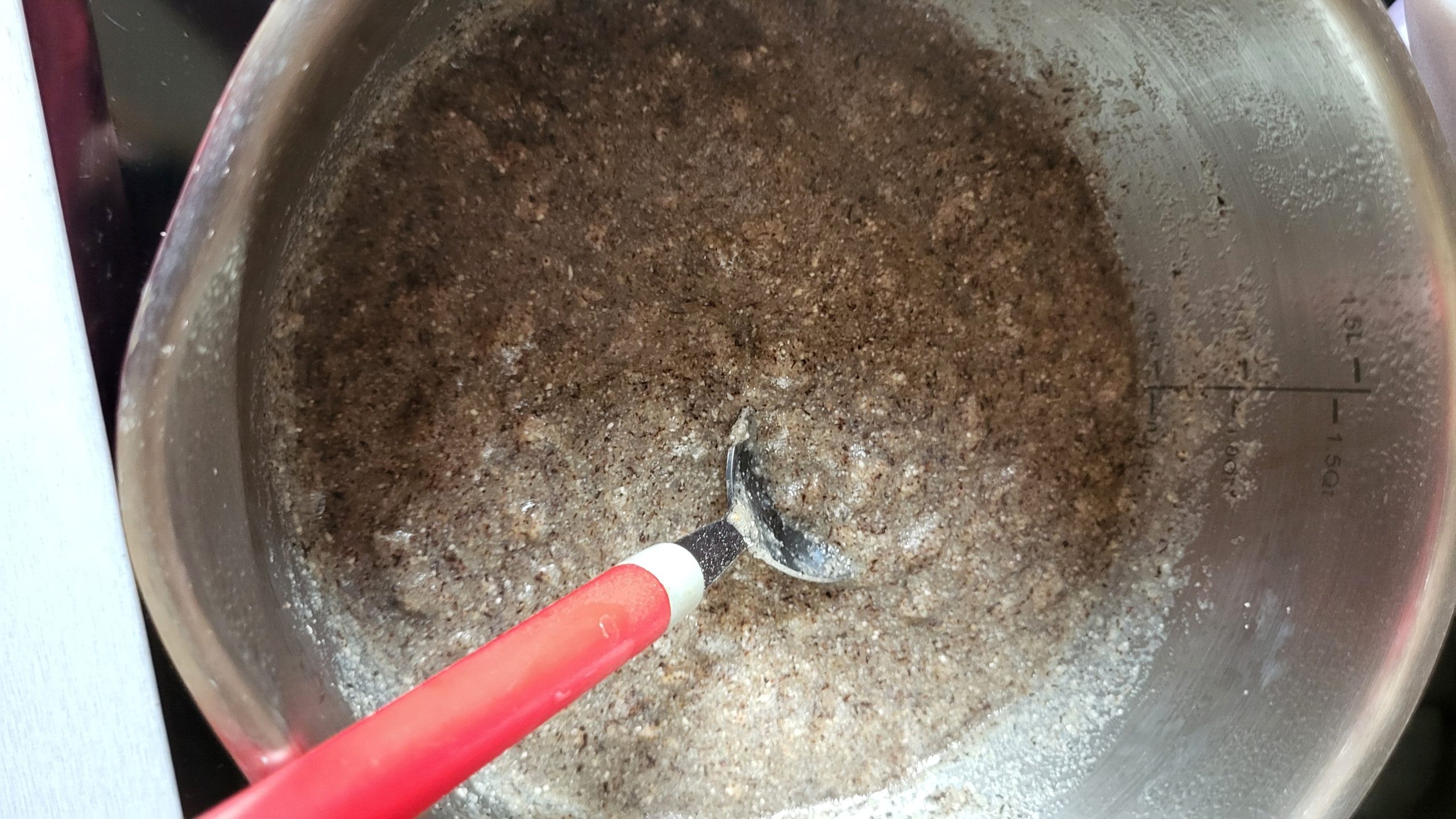 Kada voda proključa, postepeno dodajte 3 kašike heljdinog brašna, uz neprestano mešanje kako ne bi nastale grudvice.
